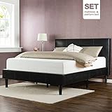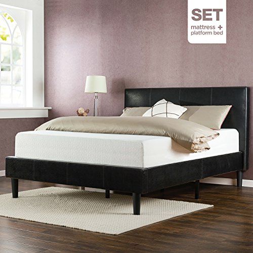 Everything you need for better sleep with the Sleep Master Memory Foam 12 inch Mattress and Deluxe Faux Leather Platform Bed Set by Zinus. The 12 inch Sleep Master Memory Foam mattress offers customized support and comfort. The top layer of premium quality memory foam cradles you with conforming comfort. The high-density support foam base provides the perfect amount of support. The Deluxe Faux Leather platform bed will provide excellent support for your mattress and will transform your bedroom. It ships in one carton with the frame, legs and wooden slats conveniently located in the zippered compartment in the back of the headboard for easy assembly. This platform bed features a headboard and low profile footboard style frame, with wood slats for strong support. The Sleep Master 12 inch Memory Foam Mattress and Deluxe Faux Leather Platform Bed Set will provide better sleep and update your bedroom with a luxurious look at the same time. Please open your mattress package within 72 hours of receipt and allow 412 hours for your new mattress to return to its original, plush shape. Another comfort innovation from Zinus. Pioneering comfort.