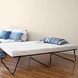 This Sleep Master folding guest bed by Zinus is the same size as a twin-size bed. Most folding or rollaway beds measure 30 inches wide, but our folding guest bed measures 38 inches wide x 75 inches long. It has a 4 inch foam mattress to give your guests a comfortable night’s sleep away from home. The top layer is 1 inch of Pressure Relieving Comfort Foam with 3 inch High-density Base Support Foam for support. Only the Highest Quality of Foam – Foam is CertiPUR-US Certified for durability, performance, and content. The grid design of the metal frame provides support and prevents the mattress from sagging. The frame sits 14 inches off the ground, leaving room underneath to store luggage. The guest bed folds in half for portability and makes it easy to tuck away when not in use. Another comfort innovation from Zinus. Pioneering comfort.
