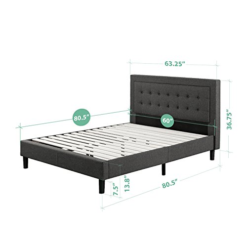 Zinus Upholstered Button Tufted Premium Platform Bed with less than 3 Inch spacing Wooden Slat Support, Queen